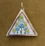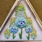 Puffy robin's egg and green flowers + periwinkle eyes.