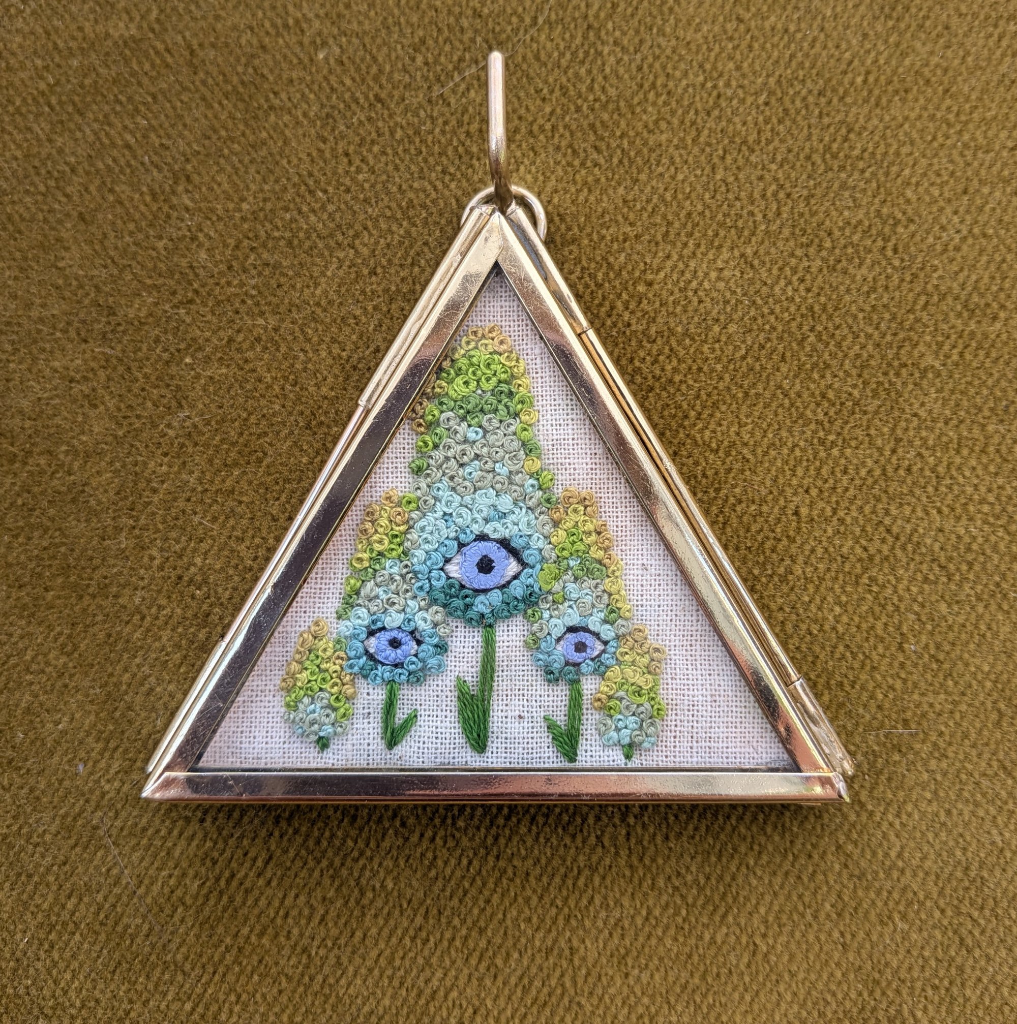 Hand-stitched and framed in glass + brass.
