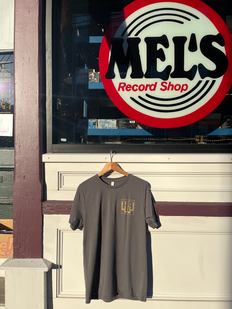 Grey Bella + Canvas shirts (the soft ones) with gold ink that sparkles a bit. VERY LIMITED QUANTITIES in S, M, and L.